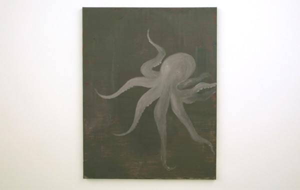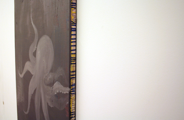 De werken van Aldwin van de Ven zijn erg divers en ook een enorm raadsel waar ze nu eigenlijk over gaan. Het schilderen van een inktvis is niet echt doorsnee te noemen, het schilderen van een abstract werk naast een opmerkelijk geschilderde schedel… Eigenlijk stelt het mij vooral voor veel raadsels over het beeld zelf. Waarom kijk ik hier in hemelsnaam naar een inktvis?! Gaat het over het schilderen van een beeld? Dat is misschien nog wel het meest plausibele verhaal, maar echt zeker weten doe ik het niet. Als Aldwin van de Ven zelf dit leest, mag hij zeker reageren.