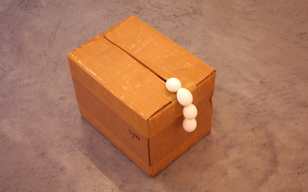 Bij Heide Hinrichs is de transformatie in enkele gevallen heel letterlijk zichtbaar, de afgietsels in dit geval. Ook is er sprake van transformatie van de onderdelen die ze gebruikt in haar werk, ze combineert objecten die in principe totaal niets met elkaar te maken hebben, maar die vervolgens op een bepaalde manier iets met elkaar van doen krijgen. Dat levert poëtische beelden op die vooral veel vragen stellen over het object-zijn van dat object of die objecten. Waarom de combinatie eieren en een kartonnen doos?