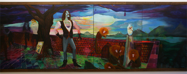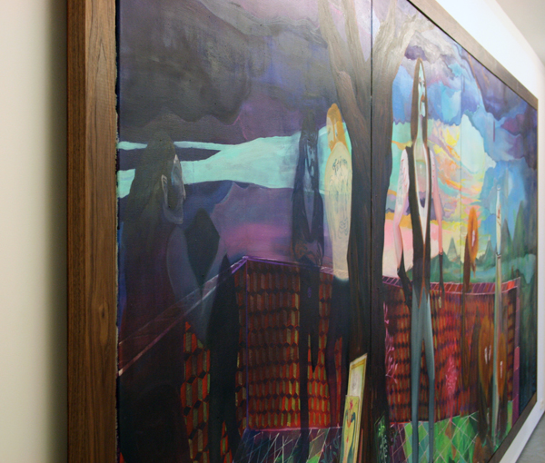 In elk geval zijn er olieverfschilderijen te zien op verschillende formaten. Die verschillende formaten doen het goed. Doordat de grote werken kolossaal zijn, krijgen juist die kleine werken als accent veel meer betekenis en relevantie.