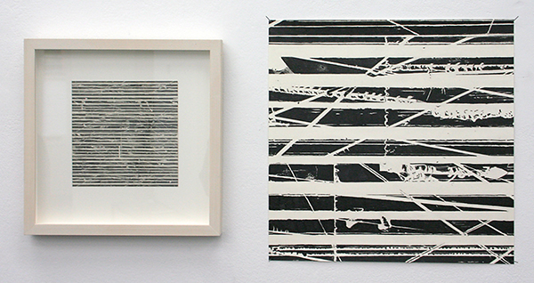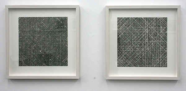 Stephan van den Burg – Zonder Titel (tweeluik) – 15x15cm Potlood en tape op papier, 34x34cm potlood op papier